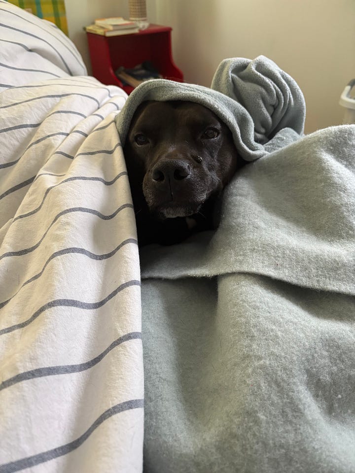 My first clue of the rats’ presence was that Louis kept whining and pawing at the dishwasher. Louis is part pitbull terrier and I wondered if he could perhaps catch a rat or two, but then Liz pointed out that Louis sleeps 16 hours a day beneath 2-3 blankets, and is not particularly fast. The most terrier thing about Louis is that he cannot be trusted off-leash—despite years of intensive recall training, he will bolt if he sees a deer or literally any animal.